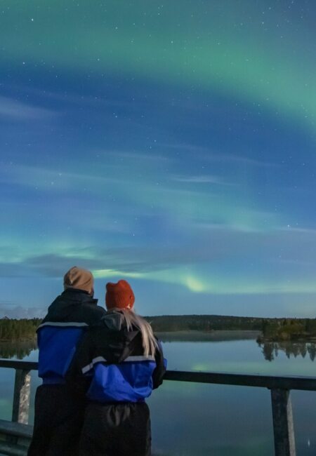 - Take a snowmobile through the nocturnal, snow-covered forest, far away from residential areas and their light pollution, as you ascend the silent, snowy fells. Surrounded only by the untouched wilderness, you’ll feel the magic of Lapland’s night settle in around you. And if the northern lights appear above, we will stop in the heart of nature to capture the moment with a camera, creating unforgettable memories beneath the glowing Arctic sky.