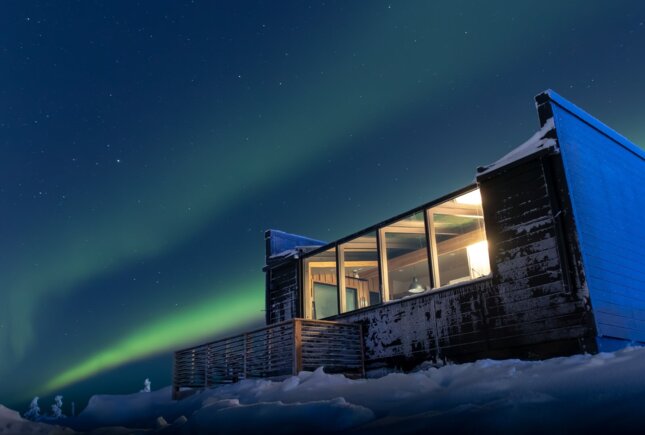 Hike under the stars from the resort to a wilderness camp in search of the Northern Lights.