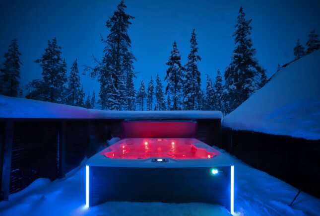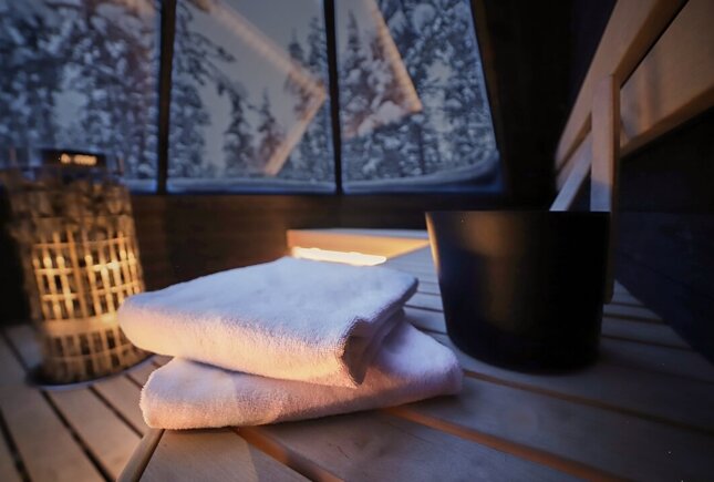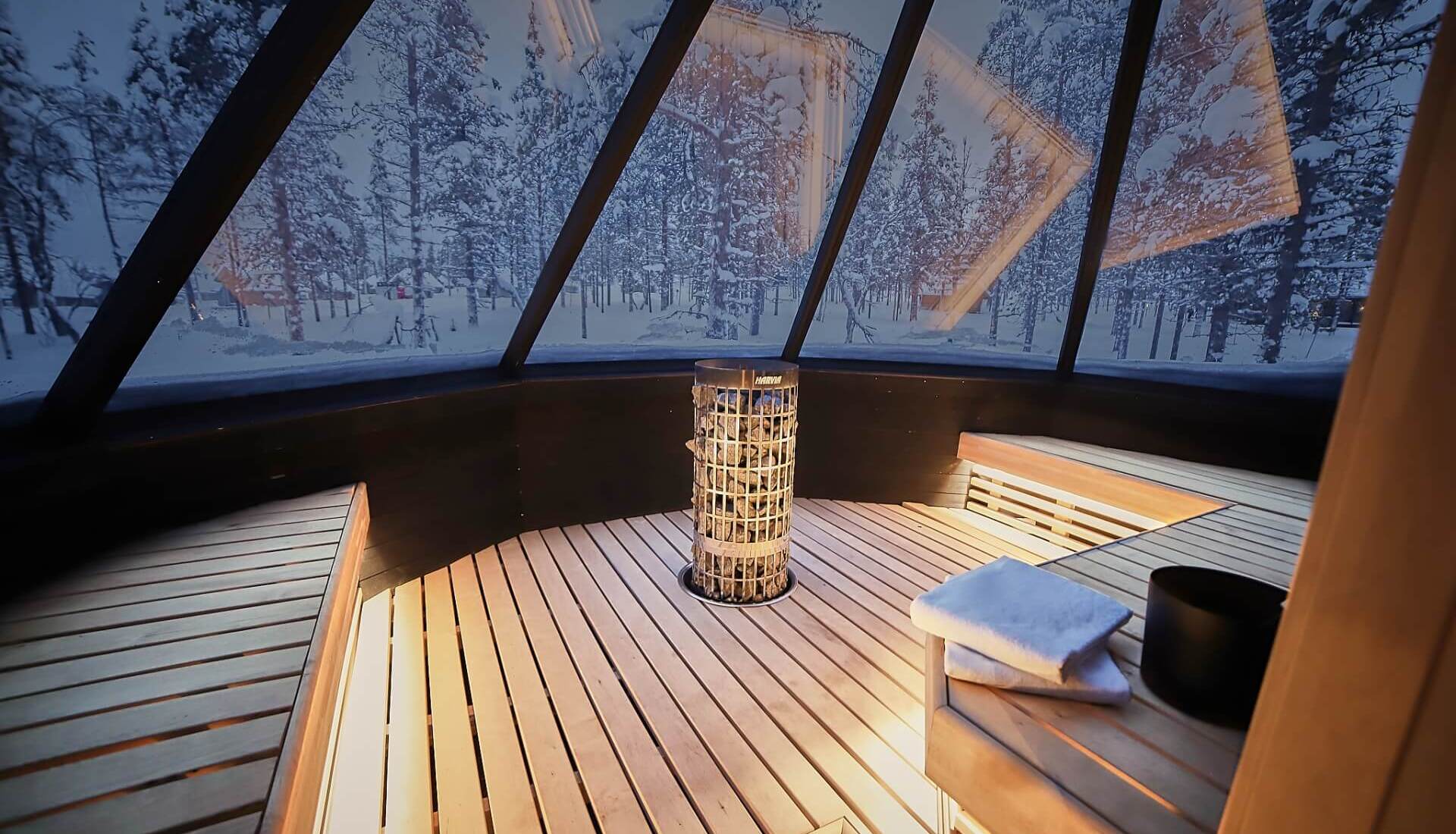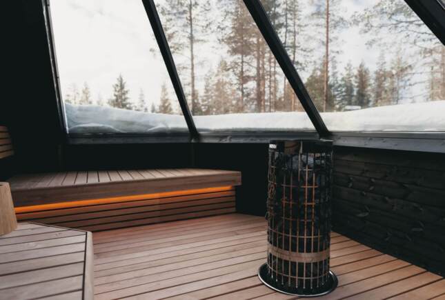 A beautiful setting to enjoy Finnish sauna and possibly Northern Lights. Built in the same style as our Aurora Cabins with a large sky window, the Igloo Sauna offers a perfect combination of viewing the night sky while warming up in the Sauna and relaxing in a hot tub.